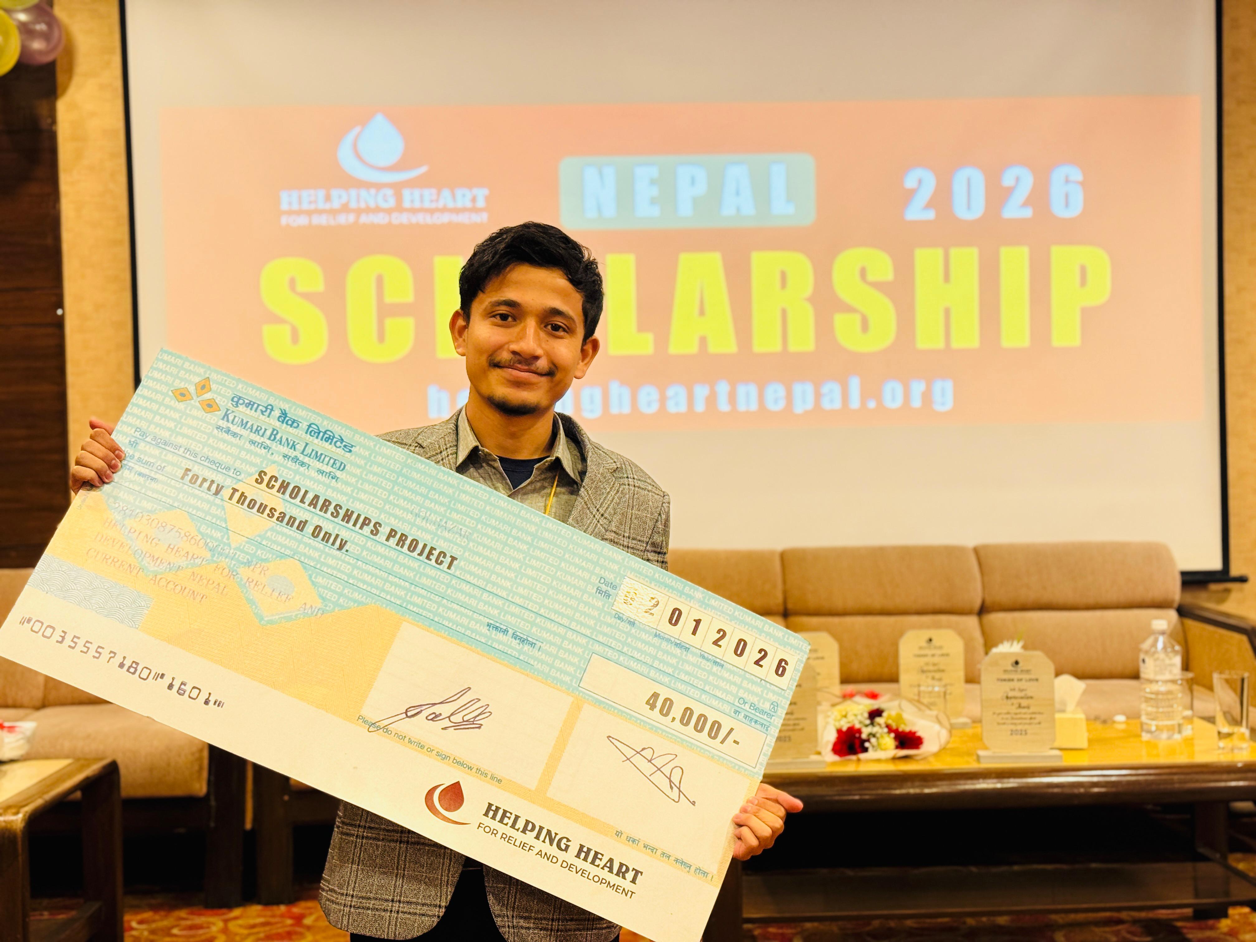 Helping Heart Nepal has awarded higher education scholarships to 40 deserving students from across the country, supporting studies from diploma level to PhD and enabling students from financially challenged backgrounds to continue their academic journeys.